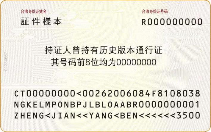 臺(tái)灣居民來(lái)往大陸通行證的正面視讀區(qū)“證件號(hào)碼”后,有一欄兩位數(shù)的“簽發(fā)次數(shù)”。申請(qǐng)人曾持有舊版臺(tái)胞證的,在證件背面會(huì)加注曾持證信息(其號(hào)碼前8位均為**** ****)。
