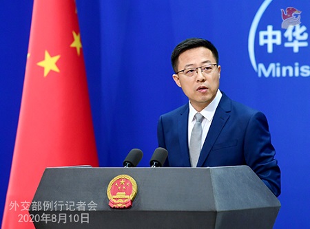 2020年8月10日,外交部發(fā)言人趙立堅(jiān)主持例行記者會(huì)現(xiàn)場(chǎng)。